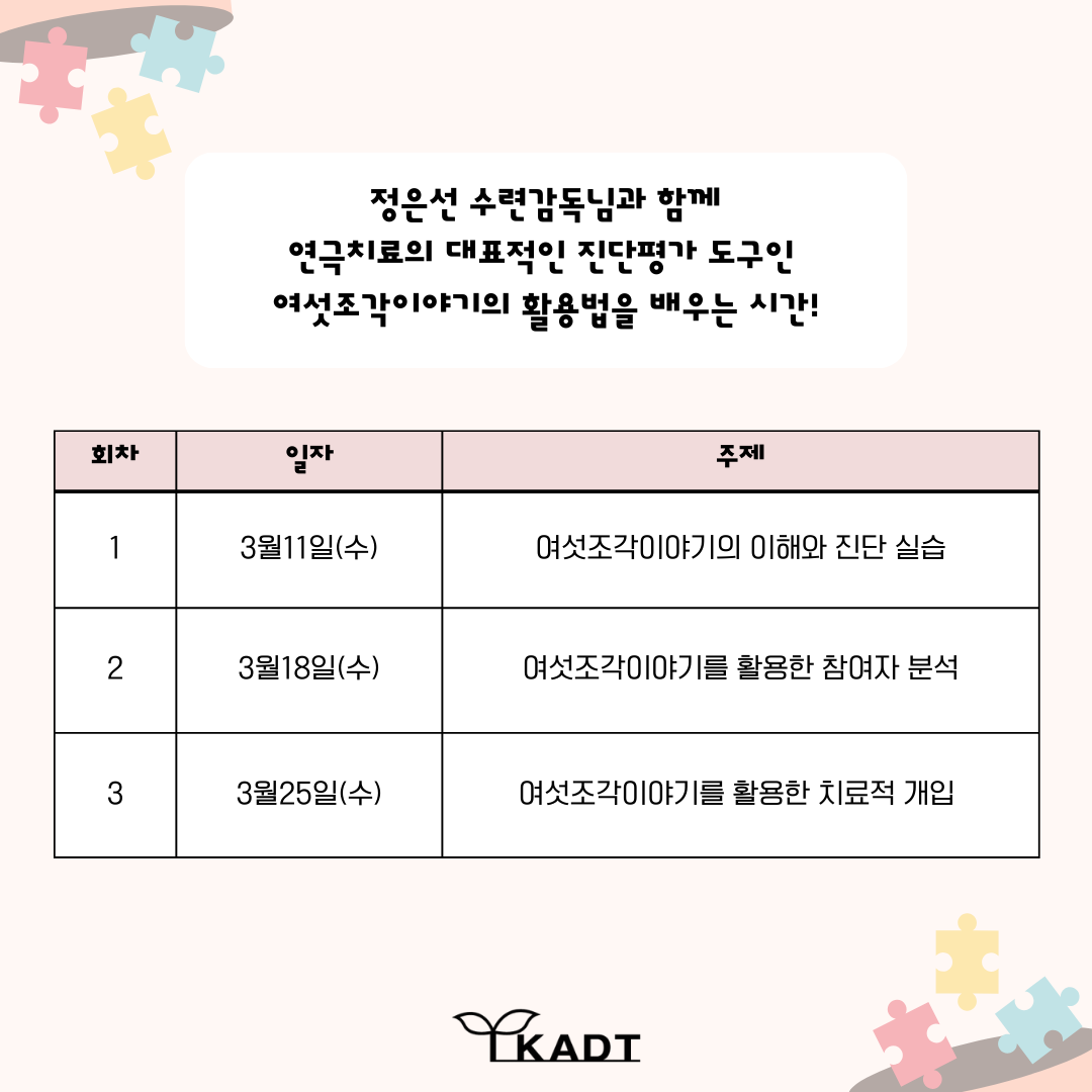 [문의] 02-745-0975 / 카카오톡 한국연극치료협회(kadt)